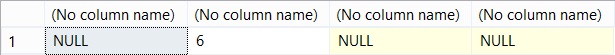 SELECT TRY_CONVERT(INT, 'Not a Number'), TRY_CONVERT(INT, '6'), TRY_CONVERT(INT, '1.23'), TRY_CONVERT(INT, ',');