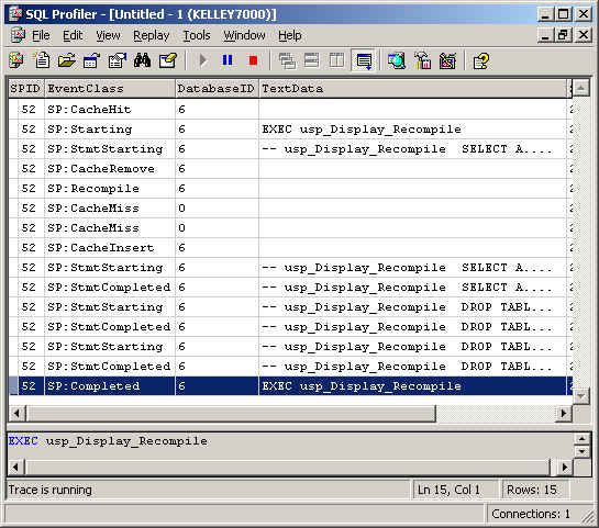 stored procedure. As a result, each time the usp_Display_Recompile stored
