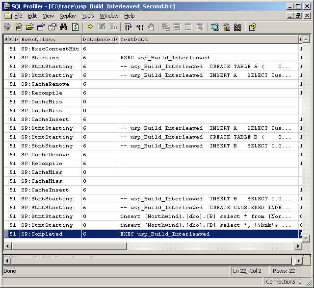 have been dropped, recreated, and repopulated! Looking at a profiler trace