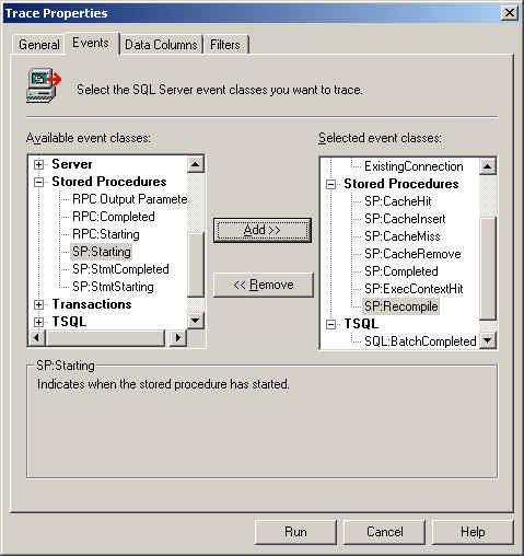 With SQL Server 2000, Profiler comes with events geared to allow us to understand more about caching and compilation of our stored procedures.