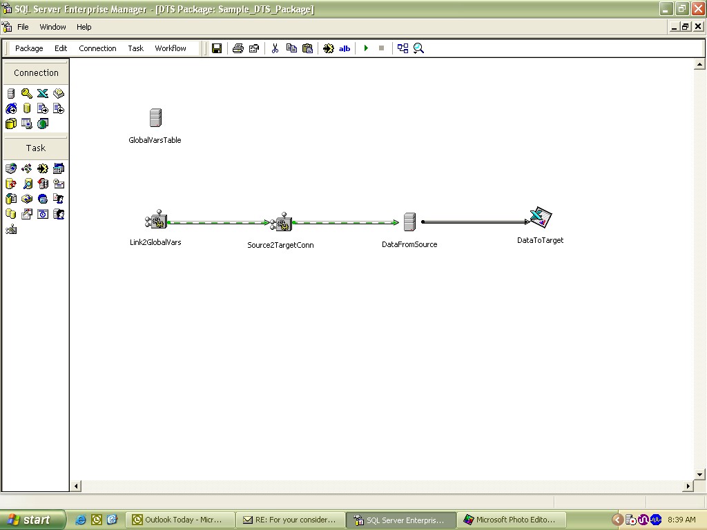 To illustrate this method, I created a sample package that reads a Source table and writes to an Excel spreadsheet as shown in Fig2. On a typical development, you start out with defining the transformations after which you add the