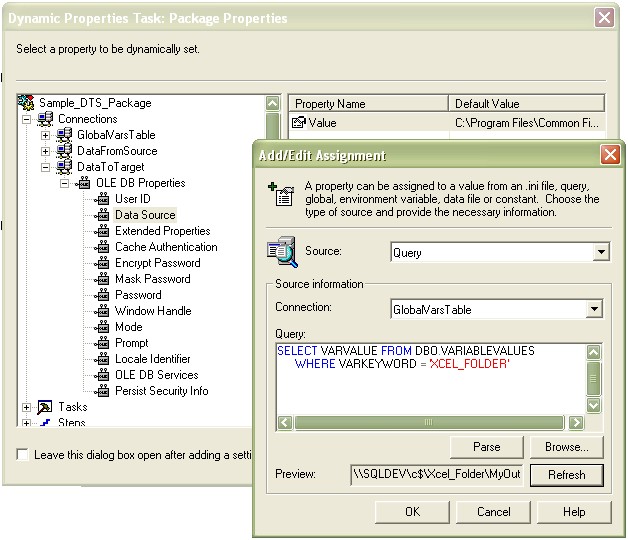 The popularity of DTS has continuously grown but it had and still has issues with portability. SQL 2000 offers a lot of alternatives to make DTS packages portable. I have tried the INI file approach and found that an INI file can only hold a limited amount of variables. The 'Query' Method, however, looks more promising.