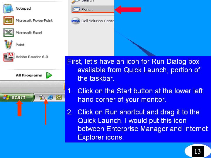 Using "Preferred" method you can start Enterprize Manager, Internet Explorer, Microsoft OUtlook or any other application you use on every day basic. Just one click and you have Enterprize Manager running! In SQL Query Analyzer, my favorite icon from Tool bar is Connect.