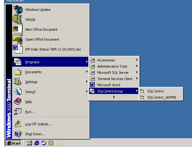 The first step in using the product is to add some servers to monitor. This can be done in a couple of ways. There is a bulk method of loading servers, a self discovery method and the ability to add them one at a time. I used the individual method of loading the servers. This was done using the administration screen which is one of the two options in the program menu for SQLCentric (SQLCentric_Admin, see below).