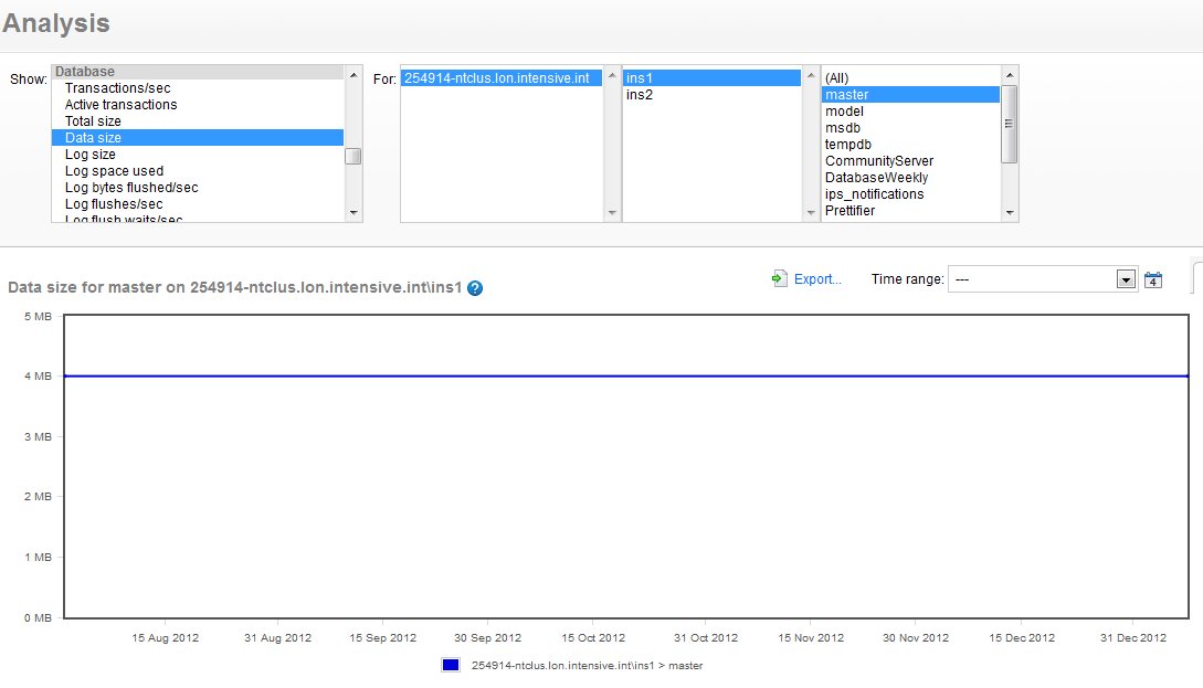 The msdb database is a little different. This database is currently 480MB. Again, almost no growth across 6 months. We have a fairly steady state for the data being stored here. As new backups are run, old ones trimmed, so not a lot of data in here. I'm choosing a (roughly) 10% growth as a fixed number. The log also is steady, so I'm going slightly larger here, percentage-wise, since if things go wrong in msdb, I expect more log activity than data activity.