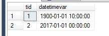 Now, if you are going to select the value and use it for something in your application, you will gett the result, but this result is wrong based on the fact that 1/1/1900 is not the date you expect to see and use as the outcome. This is a little bit scary and creates potential data issues.