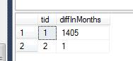 select tid, datediff(mm,datetimevar, getdate()) diffInMonths from @tbldate;