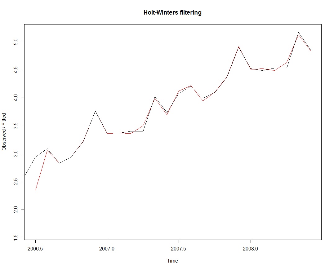 fitM200Sales_TS <- HoltWinters(LogM200Sales_TS)