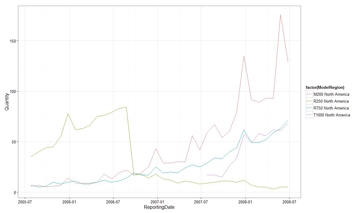 M200Sales_Dataframe <- filter(Sales_Dataframe, ModelRegion =="M200 North America")%>%