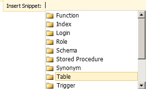 The insert snippet let us create code easily. For example we can create tables and views in few seconds. Let’s take a look at it.