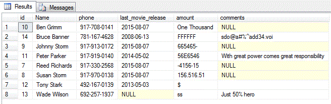 INSERT INTO dbo.LIKETest(Name, phone, last_movie_release, amount, comments)