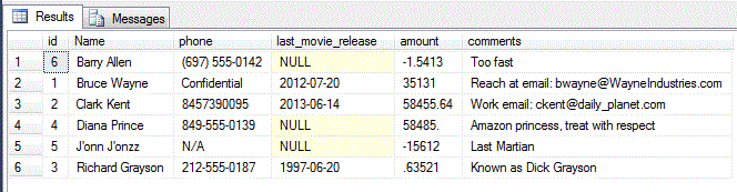 ( 'Barry Allen', '(697) 555-0142', NULL , '-1.5413' , 'Too fast'),