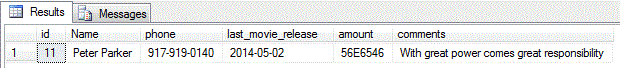( 'Peter Parker', '917-919-0140', '20140502', '56E6546' , 'With great power comes great responsibility'),
