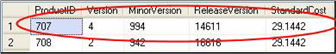 Figure 1: Sample from Production.ProductVersion