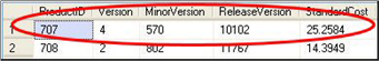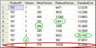 SELECT ProductID, MAX(Version) AS Version, MAX(MinorVersion) AS MinorVersion, MAX(ReleaseVersion) AS ReleaseVersion, MAX(StandardCost) AS StandardCost FROM Production.ProductVersion WITH (NOLOCK) GROUP BY ProductID;