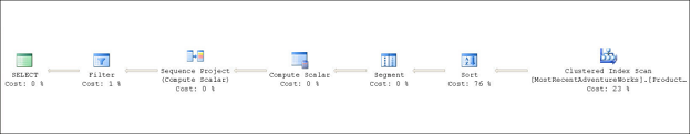 The following figure shows the estimated query costs for the Production.ProductVersion. The subquery implementation actually took less than 1 second to complete where as the ROW_NUMBER() implementation took about 2 seconds to complete for 1,000,000 rows.