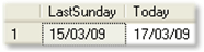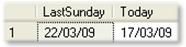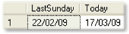 SELECT dbo.fn_LastSunday(1) as LastSunday, Convert(nchar(8),getdate(),3) as Today