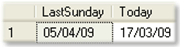 SELECT dbo.fn_LastSunday(3) as LastSunday, Convert(nchar(8),getdate(),3) as Today
