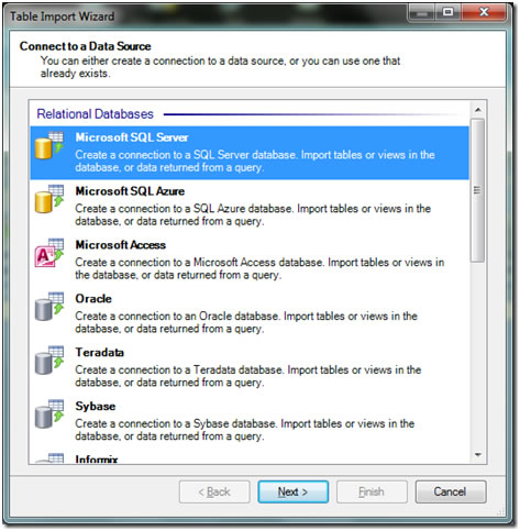 Since PowerPivot is all about analyzing data, you’ll need some data do work with. You’ll see that we can use a huge number of different data sources, such as Excel worksheets, SQL Server, Oracle and so on. You can find some sample databases to play with here, and for the purposes of this article we will use the following database (save this to an appropriate location on your hard-drive). Ok, now that we have everything installed, we can start the fun!