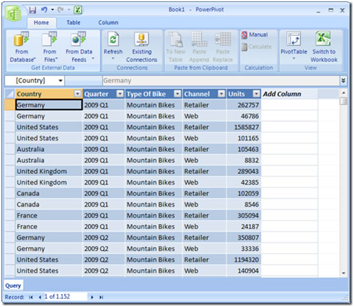 Because Excel is the most commonly-used and familiar interface for those people that make business decisions. PowerPivot is also more versatile than simple using a dynamic table with an SSAS cube, because it’s possible to integrate a large amount of data from virtually any source with a minimum of hassle, and then share the generated analysis through integration with SharePoint 2010. PowerPivot also has its own formula language, known as DAX (Data Analysis eXpressions), which is similar to Excel’s native formula language but comes with more capabilities. For example, DAX expressions let you add calculated columns to your PowerPivot and calculated fields to your individual pivots. DAX gives us some pretty neat functionality, and I’ll definitely cover it in my later, more advanced articles.