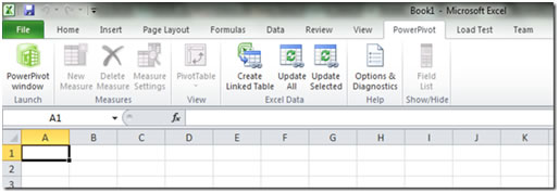 In this tab we have six groups: Launch, Measures, View, Excel Data, Help and Show/Hide. We’ll start with the Launch group, which opens the PowerPivot window as seen in Figure 2. The other groups on the tab will be covered in the next article, when I’ll show you some more advanced features. For the purposes of this article, we won’t need them.