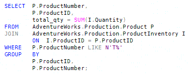Here's a simple query (using the AdventureWorks sample database) that shows the total number of items in the warehouse for each of a small number of products: