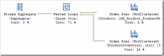 That's still not a great plan: we are scanning the whole Inventory table once for every row from the Product table that matches on the ProductNumber predicate. We need rules that know about non-clustered indexes - the basic rule we have relied on so far simply translates a GET to a table scan. Enabling a couple more rules produces: