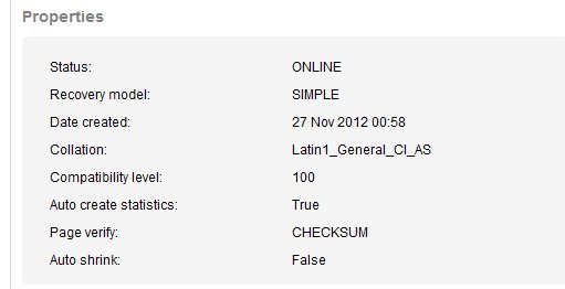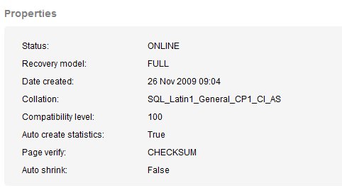 If I look at one of the databases in question, the Community Server database, I see this at the bottom left.