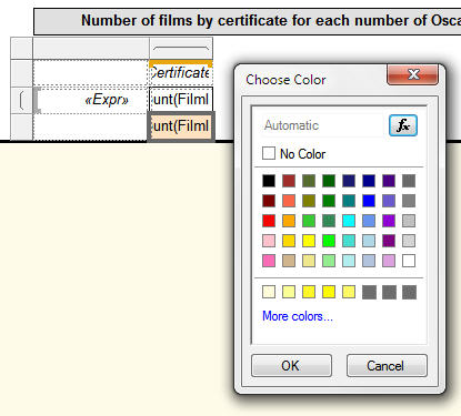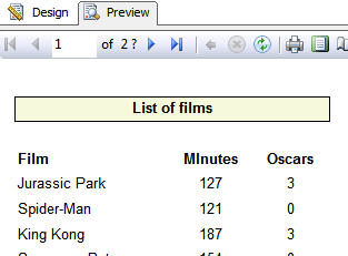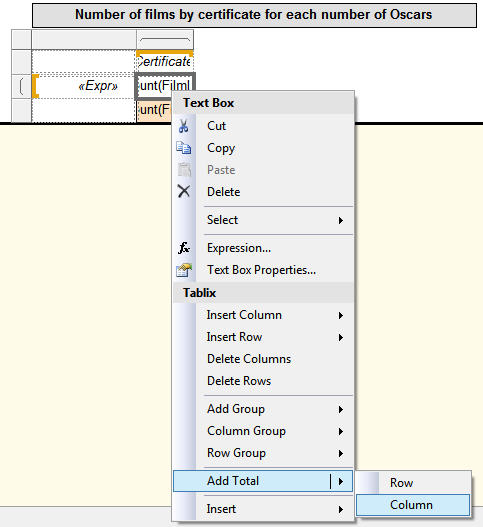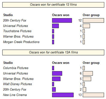 Next, the following example uses data bars to compare Oscars won for films across a report and within a group: