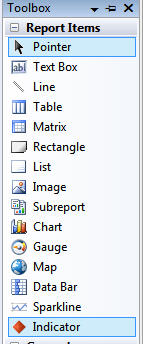 Indicators are a joy to use (although they work better when you add a rectangle first), and a welcome addition to Reporting Services. There's a full explanation of how to use indicators here (including their foibles).