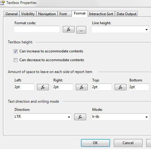 - Borders work far more sensibly (in particular, when you insert rows or columns SSRS uses much more sensible defaults).