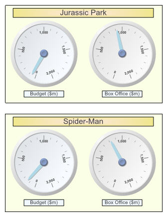 Here, by contrast, is an example of a radial gauge comparing film budget with box office takings: