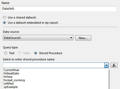 - You can now choose a stored procedure from a list for a dataset, rather than having to type it in: