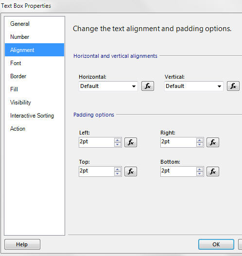 Gauges are easy to add - just drag them from the toolbox into your report - and fairly easy to format, once you've got the hang of the measurement units used. Everything is positioned relative to the top left corner of the object containing it; for example, the caption labels above with the light blue background are:
