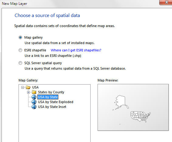 At this point I'll freely confess I know very little about this area of SSRS - it's the one feature on which we don't train. However, you can get the idea from this dialog box for adding a new map to a report: