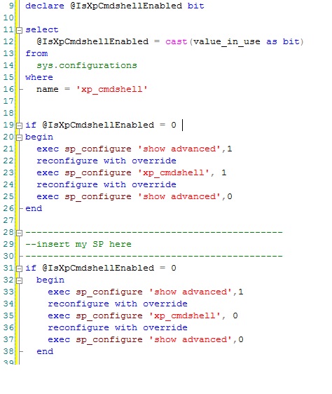 There might be a slight problem with executing powershell (xp_cmdshell) on some systems. I’m not sure if you are allowed to use it or not. This might be a bit of a stopper if you can’t use it. It is possible you might be able to use powershell only for duration of this stored procedure.