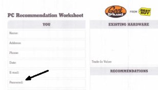 I thought this article on Best Buy PC setup was amusing. Here's a company that's trying to provide a service. They're offering to set up most of your new machine for you. To make sure that things work right away for you, they ask you to provide your password, so they can set a login password to your Windows/Mac. However the form has password below email, which might imply they will set up your email as well. That's something I know many non-technical people might appreciate.