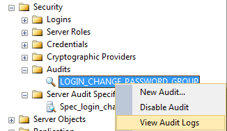In this article, you will learn how to audit password changes using the LOGIN_CHANGE_PASSWORD_GROUP Server Level Audit Group by creating an server audit and server audit specification.