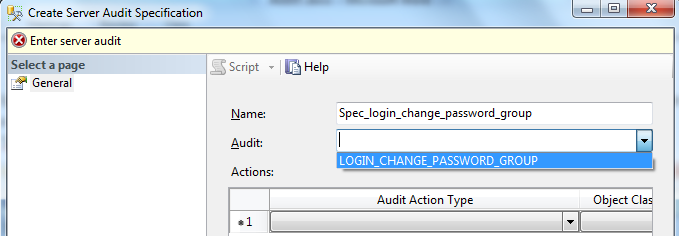 The Server Audit Specification object belongs to an audit. You can create one server audit specification per audit, because both are created at the SQL Server instance scope. To configure the audit you need to perform the following steps.