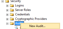 First, expand the security folder in Sql Server Management Studio(SSMS) and right click on Audit, then select new audit as shown in Fig. 1.