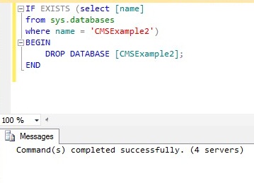 Depending on how many servers are in the group, you should then see “Connected. (4/4)” at the bottom of the query window (assuming 4 SQL Servers are in the group, and all four are connected). If 3 of the 4 connected, you would then see “Connected. (3/4)”.
