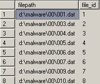 CREATE TABLE files (filepath varchar(512), --file_id INT IDENTITY(1,1) )