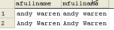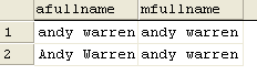 Or does it? I set one row to have the value 'andy warren', the other to have