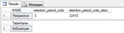 JOIN sys.tables t ON ctt.object_id = t.object_idThe results are shown below: