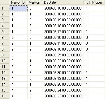 CREATE TABLE PersonRecord ( PersonID int, Version int,DEDate datetime)