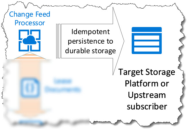 Once change feed processing code is implemented it’s just a case of creating some actions in response to the change data. In this simple illustration, the data is idempotently stored away in durable storage. Changes are read from the change feed in LSN order per partition. Chronological ordering across partition is not guaranteed. This is not an issue if the documents are atomic, with no dependency on related documents.