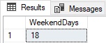 SELECT COUNT(*) AS WeekendDays FROM WeekendList_CTEWhen you run this query, you should see the output that is shown in Figure 1.