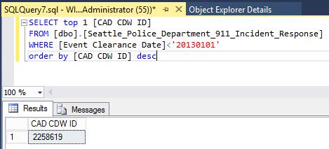 SELECT top 1 [CAD CDW ID]