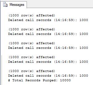 PRINT 'Deleted call records (' + CONVERT(VARCHAR(8),GETDATE(),108) + '): ' + CAST(@DeletedRows AS VARCHAR)