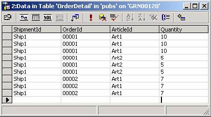 table OrderDetail with columns ShipmentId, OrderId, ArticleId and Quantity where